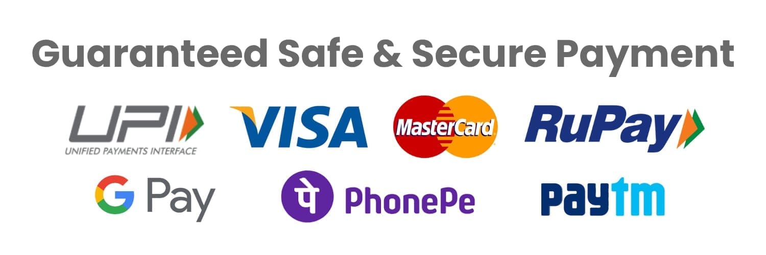 We accept UPI, Google Pay, PhonePe, Paytm, Credit Card, Debit Card and Net banking, with secure payment gateway.